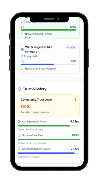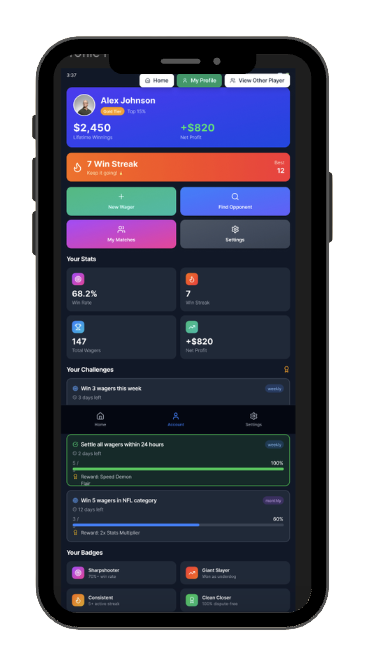 Our platform provides a secure and transparent environment for users to showcase their skills, compete against peers, and wager on the outcome through a “Social Contract”